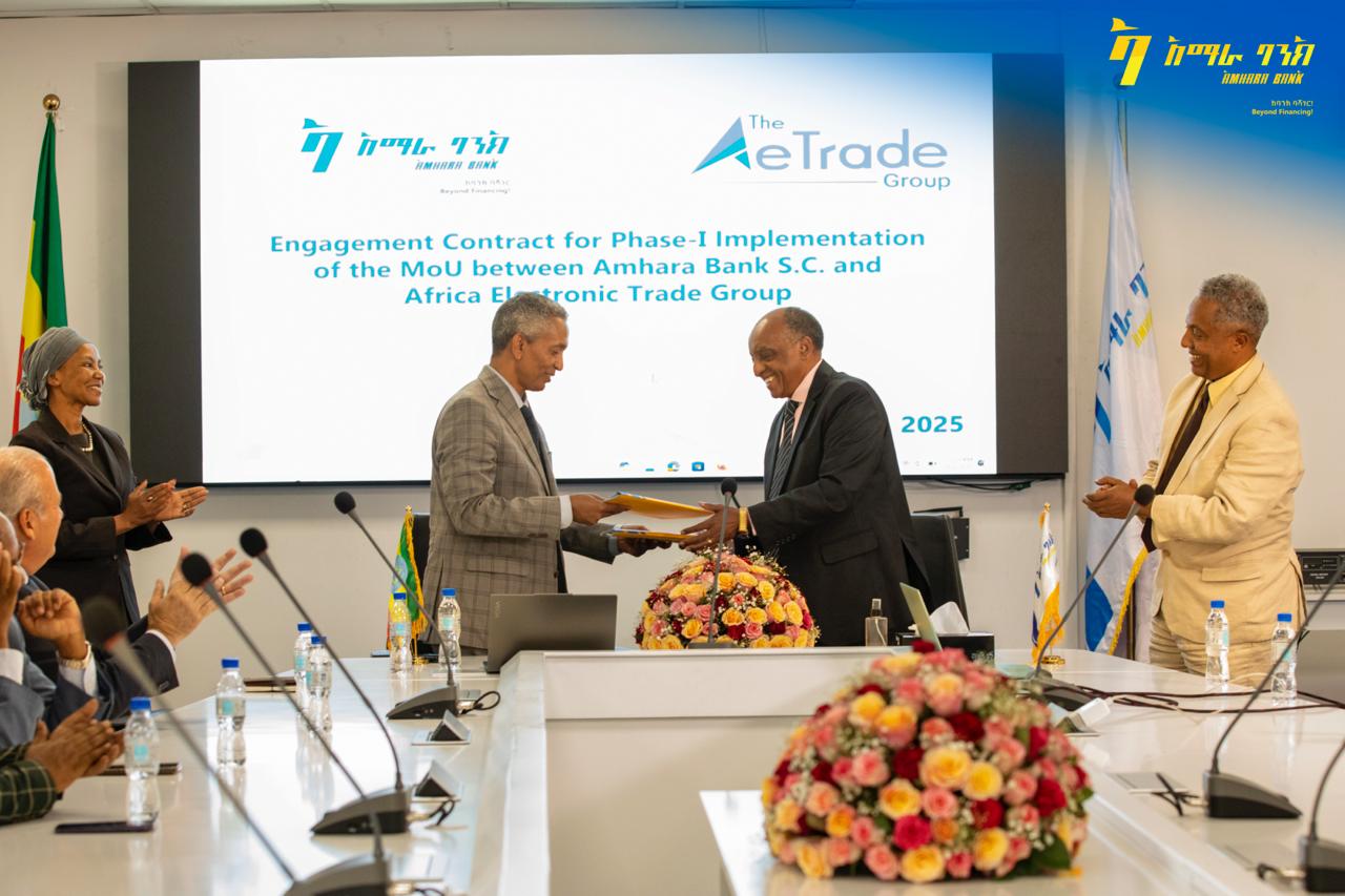 Amhara Bank signed an implementation agreement with Africa Electronics Trade Group to elevate their previously established strategic partnership to a higher level.